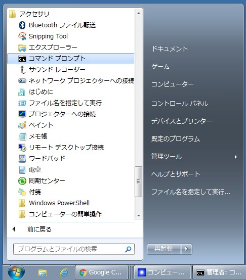 まずはコマンドプロンプトの起動。